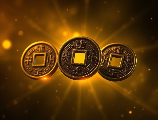 El método más accesible y popular. Utiliza tres monedas tradicionales chinas con agujero cuadrado en el centro, representando la unión del cielo (redondo) y la tierra (cuadrada).